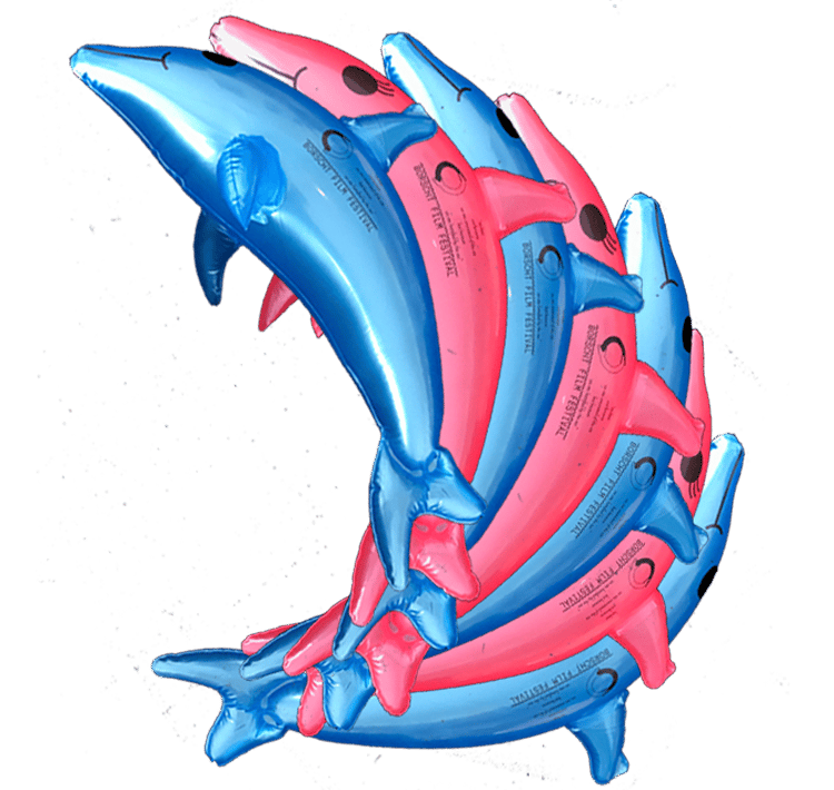 It's just a dolphin, about three feet long. You can fill it with air from your lungs but you might get light headed. It says something dolphins would probably say on it.
