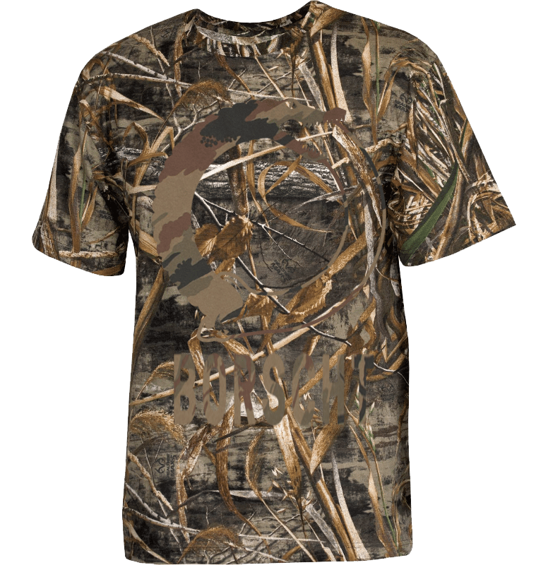 Stay cool and comfortable as you trek through the woods in our authentic Realtree x Borscht camo on camo T. You’ll have all of the hunting technologies that you need with an all-over camouflage Realtree Max5 print, SmartWick technology to absorb sweat from your skin, and antimicrobial fabric to inhibit bacterial and fungal growth.
